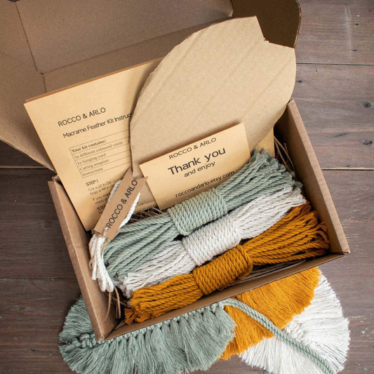 Discover the art of macrame with our exquisite collection of DIY Macrame Kits! Dive into the world of creativity as you craft stunning single and triple macrame feather wall hangings, perfect for adding a boho-chic touch to your space. Each kit includes everything you need, and for those craving more, explore our optional add-on of premium macrame cord to create additional feathers. Elevate your crafting experience and bring a touch of handmade beauty to your home. Shop now and let your creativity take flight!