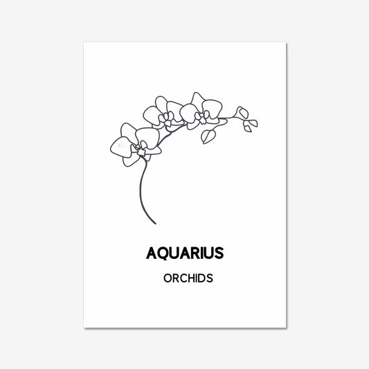 AQUARIUS Zodiac Birth Flower Print - ORCHID Floral Line Art