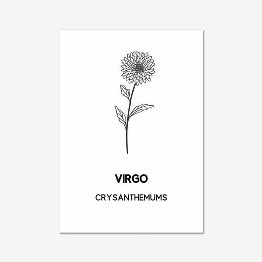 VIRGO Zodiac Birth Flower Print - CRYSANTHEMUM Floral Line Art